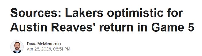 除此之外,湖人球星东契奇同样因4月3日拉伤的腿筋伤势,持续无法出战。
